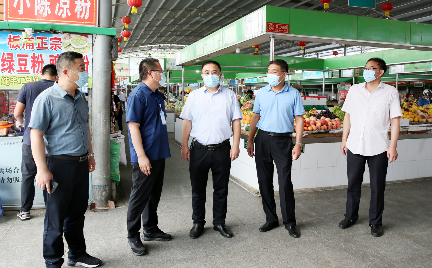 85日,集團(tuán)公司黨委書記、董事長(zhǎng)、疫情防控領(lǐng)導(dǎo)小組組長(zhǎng)楊龍深入巨龍農(nóng)貿(mào)市場(chǎng)督導(dǎo)疫情防控工作。他強(qiáng)調(diào),要深入貫徹中央、省市委疫情防控指示精神,保持疫情防控高壓態(tài)勢(shì),抓實(shí)抓細(xì)抓嚴(yán)各項(xiàng)措施,守護(hù)好市民的“菜藍(lán)子”“米袋子”。集團(tuán)公司工會(huì)主席、疫情防控領(lǐng)導(dǎo)小組辦公室主任劉承志,金航資產(chǎn)經(jīng)營(yíng)公司相關(guān)負(fù)責(zé)人陪同督導(dǎo)。