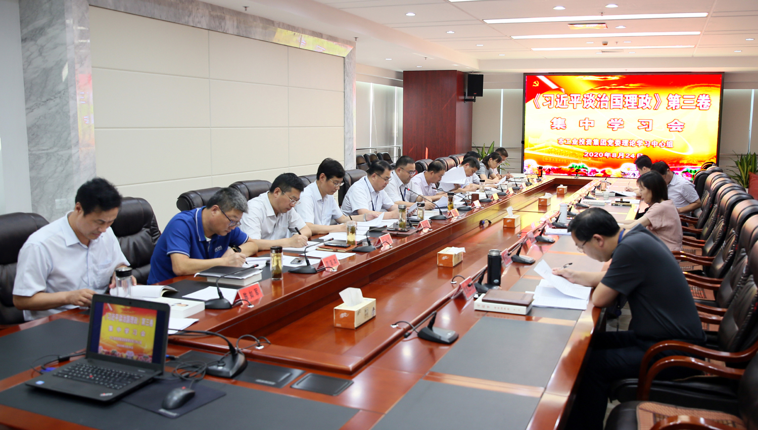 824日,集團(tuán)公司黨委理論學(xué)習(xí)中心組召開集中學(xué)習(xí)會(huì),專題學(xué)習(xí)《習(xí)近平談治國理政》第三卷。黨委書記、董事長楊龍主持學(xué)習(xí)會(huì)。