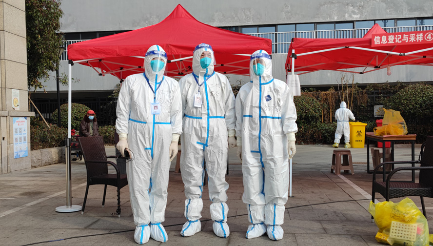 資產(chǎn)管理公司資產(chǎn)經(jīng)營部蔣劍虹部長,作為公司骨干老同志,第一時間挺身而出,主動響應(yīng)集團黨委志愿者招募需求,不顧個人安危投身社區(qū)志愿服務(wù)。與醫(yī)護人員一同參與核酸采集登記工作。他連續(xù)兩日頂住壓力與困難,身著防護服,從早上6點開始,連續(xù)奮戰(zhàn)10多個小時,在脫下防護服的那一刻體能已經(jīng)達到了極限。他謙虛的說道:“我只是做了其他“黃碼”同志想做卻不能做的事情罷了”。