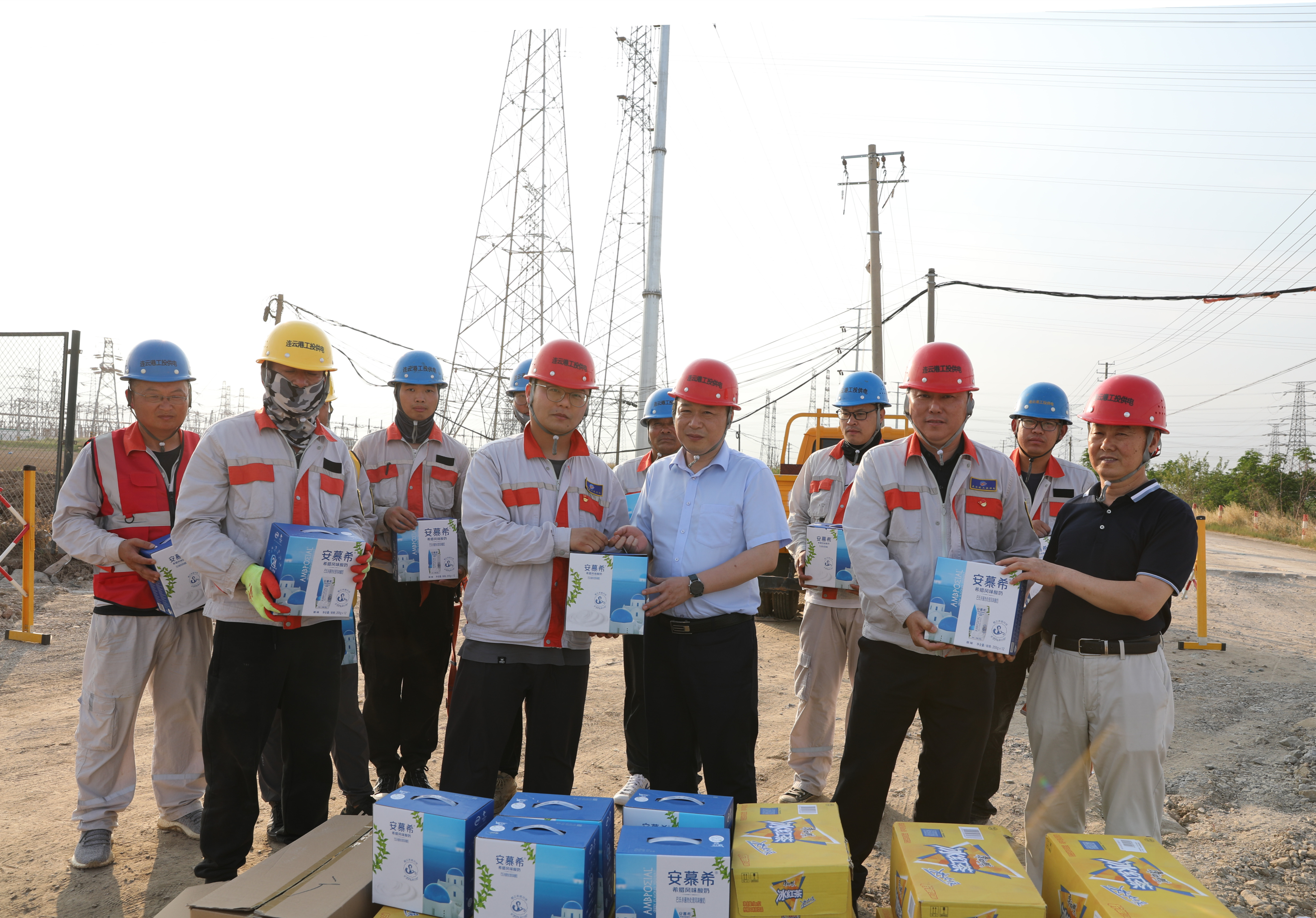 連續(xù)幾天,連云港市進(jìn)入高溫天氣。酷暑當(dāng)頭,德邦廠區(qū)段電力桿線遷改工程施工人員卻堅(jiān)守在施工一線,冒著三十幾度高溫,奮戰(zhàn)在施工現(xiàn)場,加班加點(diǎn)保障著工程建設(shè)的進(jìn)度。為切實(shí)做好一線施工人員防暑降溫工作,6月21日下午,公司黨委書記、總經(jīng)理宋晟曄、黨委副書記、工會(huì)主席王志軍一行人來到德邦電力桿線遷改工程的施工現(xiàn)場,把冰紅茶、西瓜等防暑降溫物品送到施工人員手中,給堅(jiān)持奮戰(zhàn)在高溫一線的職工送去了公司滿滿的關(guān)懷和夏日里的一份清涼。(邱利益)