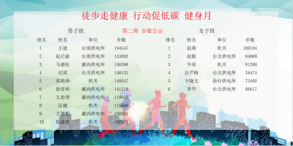 因?yàn)椤拔⑿胚\(yùn)動(dòng)”的互動(dòng)性和競(jìng)爭(zhēng)性,促使越來越多的職工開始有意識(shí)地外出“走兩步”,在職工中形成了你超我趕的良好運(yùn)動(dòng)氛圍,有效減少了員工開車出行的頻率,增加了員工參與戶外活動(dòng)、親近自然的興致。活動(dòng)已經(jīng)進(jìn)行了兩周,已有10人步數(shù)超過20萬,最高者已經(jīng)達(dá)到34萬,人均步數(shù)比活動(dòng)前增加了50%,效果十分顯著。(電宣)