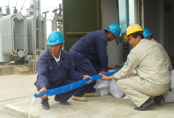 防汛演練總指揮長(zhǎng)宣布演練開始后,變電所值班工及相關(guān)人員按照各自分工,迅速拿出潛水泵、編織袋、鍬、銑等搶險(xiǎn)儲(chǔ)備物資,用編織袋裝泥壘起攔水防線,用潛水泵向防線外迅速抽水,直至災(zāi)情全部控制為止。(馬德松)