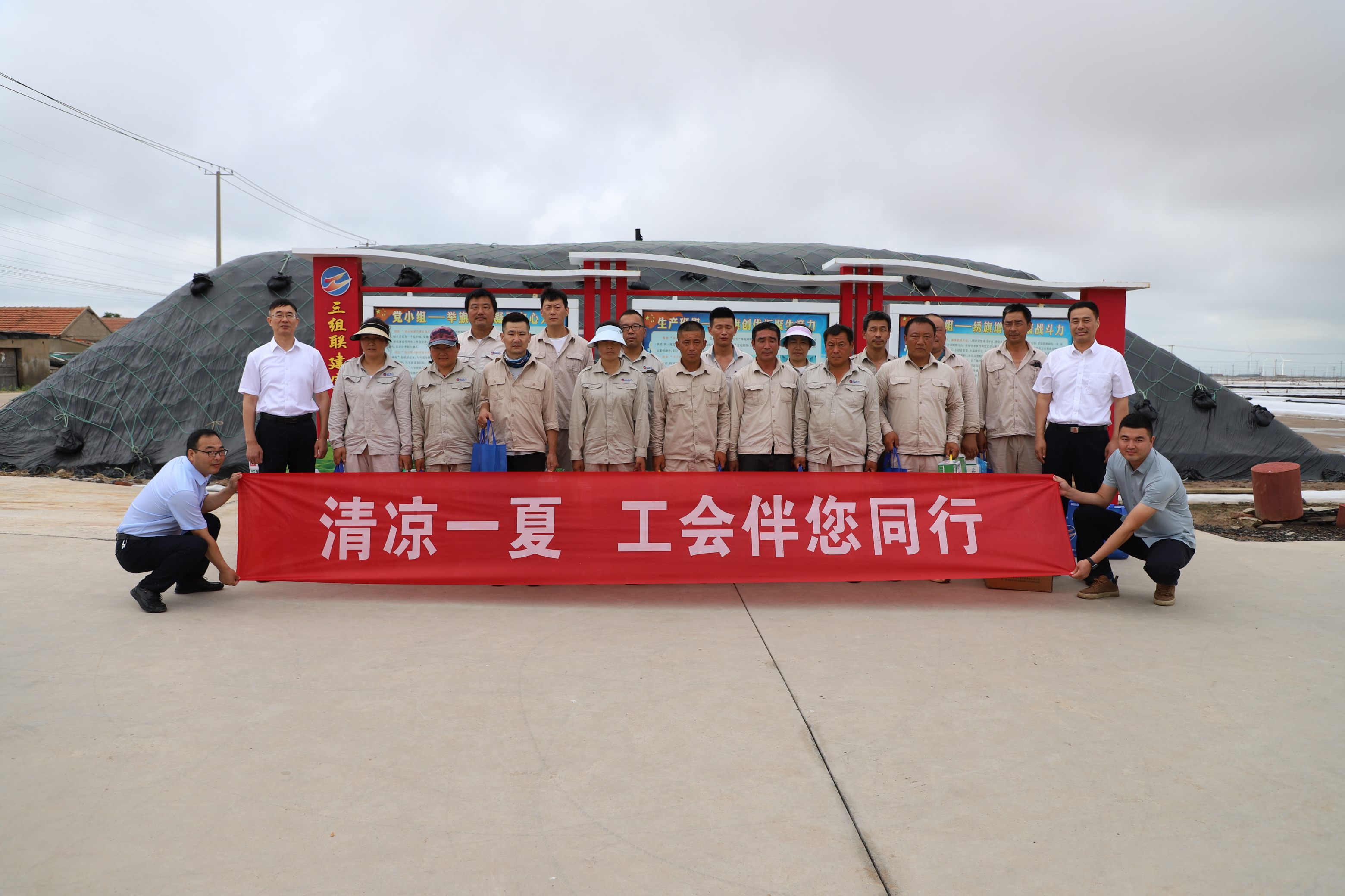 似火的驕陽擋不住心系職工的腳步,正逢炎夏的7月18日,集團公司黨委副書記、副董事長、總經(jīng)理張六林,副總經(jīng)理陳如軍等一行深入日曬制鹽公司灘頭為奮戰(zhàn)在一線的職工“送清涼”。投資公司黨委書記、董事長孫政權(quán),總經(jīng)理吳衛(wèi)平,黨委副書記、工會主席王宏,常務副總經(jīng)理徐一林陪同。