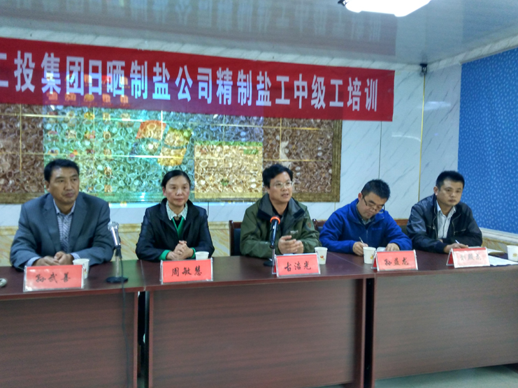 10月27日,日曬制鹽公司精制鹽工(中級工)培訓班在生產(chǎn)服務公司會議室舉行開班儀式,來自新河、埒南制鹽分公司的管理人員、班組長和青工骨干50余人報名參加學習。公司副總經(jīng)理古浩光,連云港市人社局就業(yè)訓練中心、職業(yè)鑒定指導中心主任孫益龍,連云港市振華專業(yè)技術學校校長周敏慧出席開班儀式。