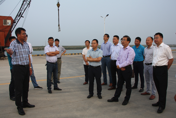 在宵洋物流公司的五灌河碼頭處,集團(tuán)公司總經(jīng)理胡建明對(duì)五灌河碼頭的建設(shè)和運(yùn)營(yíng)情況對(duì)考察團(tuán)進(jìn)行了介紹,他指出,五灌河碼頭是公司利用擁有的內(nèi)河岸線資源開發(fā)起來(lái),主要進(jìn)行原鹽駁運(yùn)和建材、化工噸袋等物資的裝卸,碼頭吞吐量年年增長(zhǎng),目前年吞吐量已達(dá)到100萬(wàn)余噸,二期碼頭擴(kuò)建項(xiàng)目即將進(jìn)行,集團(tuán)公司除了五灌河碼頭,還有一處燒香河內(nèi)河碼頭,也許暫時(shí)看不到顯著效益,但隨著江蘇沿海經(jīng)濟(jì)開發(fā)的不斷推進(jìn),碼頭的資源優(yōu)勢(shì)愈加凸顯,將來(lái)一定會(huì)成為稀缺資源。