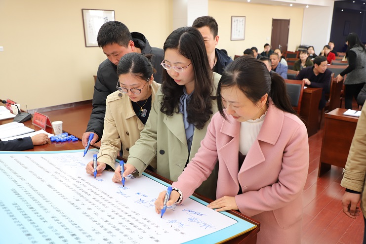談話會上,四名新提拔干部代表分別作表態(tài)發(fā)言并進(jìn)行集體廉政承諾和集中簽名。(西宣)