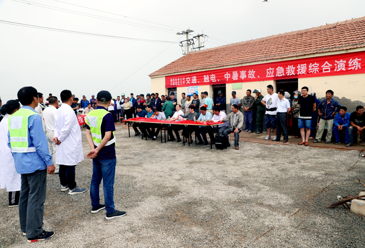 此次演練過程中,安全監(jiān)管部李長軍主持了這次演練活動,埒南制鹽分公司職工及管理人員參與其中,演練模擬現(xiàn)場有三個:1、職工在灘頭塑池堰上突然中暑(重度)。2、職工在廩基小鹽化鹵調(diào)鹵中接觸老化線路接頭時不慎觸電(傷害較重)。3、職工在上班途中三輛電瓶車相撞(跌傷較重)。在救援過程中,大家各司其職,齊心協(xié)力,配合默契,有條不紊成功完成了此次演練活動。通過這次應(yīng)急演練,進一步提高了公司員工應(yīng)對緊急事件的自我保護和防衛(wèi)能力,保證員工在發(fā)生突發(fā)事件時,能熟練應(yīng)對、有序救援,最大限度地減少事故帶來的損害,切實保護員工的安全。