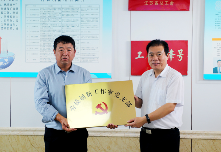 在日曬制鹽公司新河分公司的安樹(shù)林勞模創(chuàng)新工作室現(xiàn)場(chǎng),丁書記一行觀看了技術(shù)創(chuàng)新成果展示專題片,還為工作室的“勞模創(chuàng)新工作室黨支部”進(jìn)行了授牌。