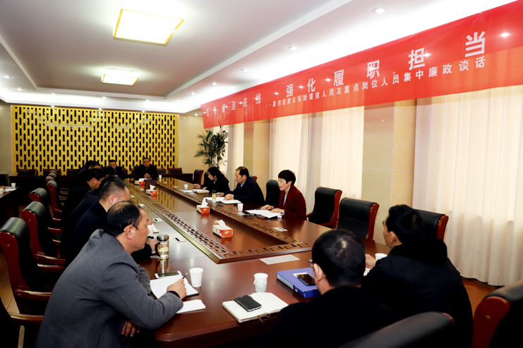 為進一步推進公司黨風(fēng)廉政建設(shè),提高黨員干部廉潔自律意識,4月11日上午,灌西公司組織開展“堅守廉潔底線強化履職擔(dān)當(dāng)”2019年新提拔人員及重點崗位人員集體廉政談話,黨委書記、董事長、總經(jīng)理李國文,黨委副書記、紀委書記、工會主席王宏,新提拔人員以及重點崗位人員參加了廉政談話。