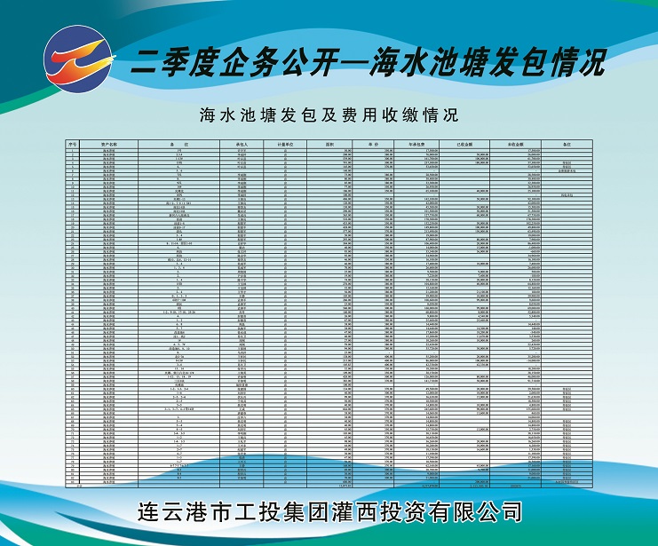 2、海水養(yǎng)殖池塘發(fā)包及費用收繳情況。共發(fā)包海水養(yǎng)殖池塘面積13073.83畝,應(yīng)收租賃費421.787萬元,已收租賃費221.39萬元,欠收租賃費200.397萬元,收繳率為52%。