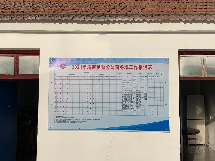 冬季是日曬制鹽收儲(chǔ)鹵水、扒土塘、整理灘場(chǎng)文明的最佳時(shí)期,也是為2022年工作起好頭邁好步的關(guān)鍵時(shí)期,為更好落實(shí)“冬準(zhǔn)”大會(huì)會(huì)議精神,126日上午,埒南制鹽公司制定冬準(zhǔn)工作推進(jìn)表,張貼在公司辦公區(qū)域墻面上,成立“指揮部”掛圖作戰(zhàn),打好冬準(zhǔn)戰(zhàn)役促。