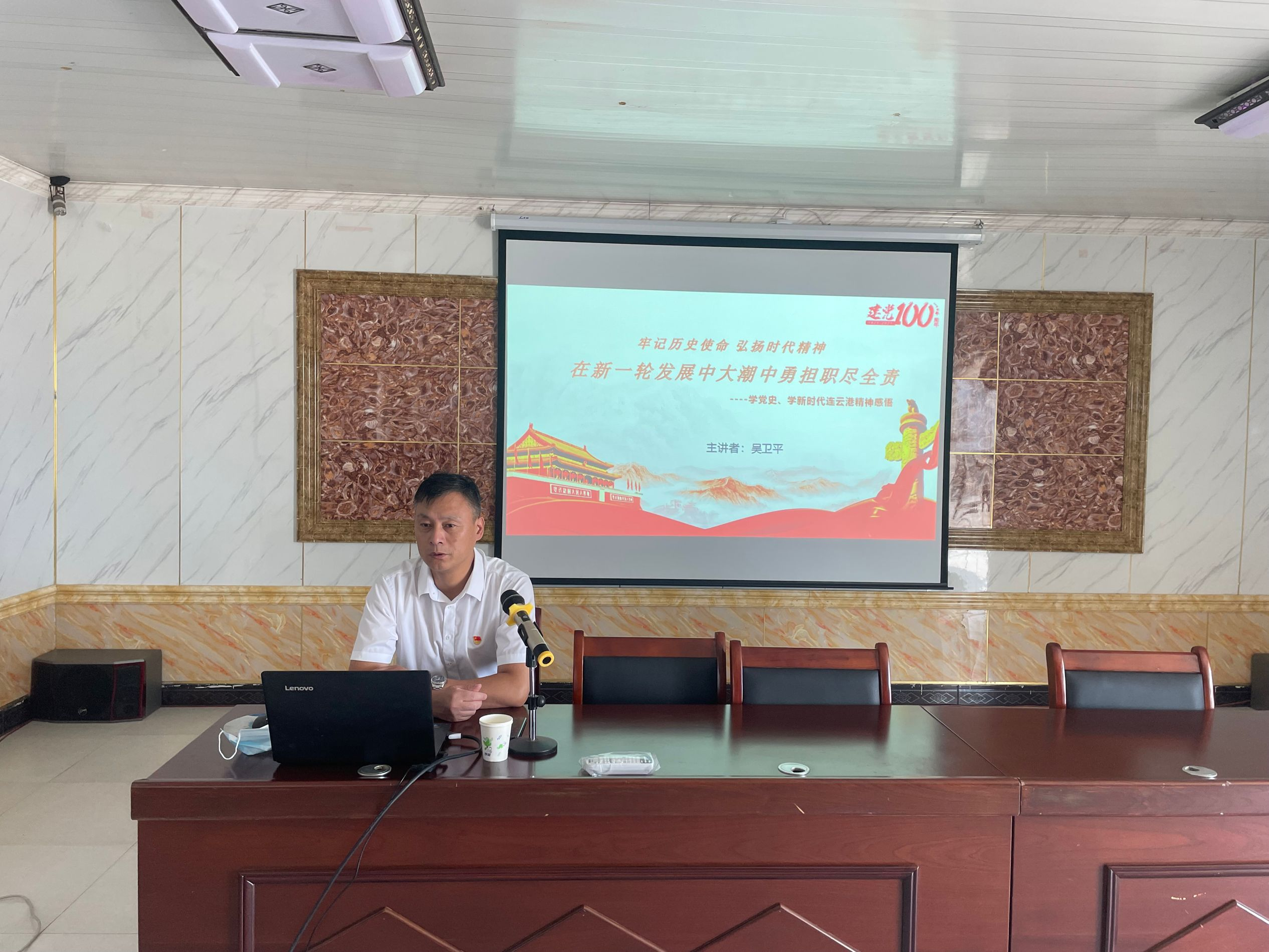 吳衛(wèi)平以《在新一輪發(fā)展中大潮中勇?lián)?zé),盡全責(zé)---學(xué)黨史,學(xué)新時代連云港精神感悟》為黨課主題,圍繞四個章節(jié)展開講述:第一章、學(xué)黨史,銘記革命先輩的無私奉獻(xiàn)精神,提高政治意識,第二章、學(xué)講話,堅(jiān)信中國特色社會主義發(fā)展方向,提升政治站位,第三章、學(xué)時代,堅(jiān)定新時代連云港精神必勝信心,踐行高質(zhì)量發(fā)展,第四章、學(xué)本領(lǐng),提升理論指導(dǎo)實(shí)踐能力素養(yǎng),樹立奮斗決心。