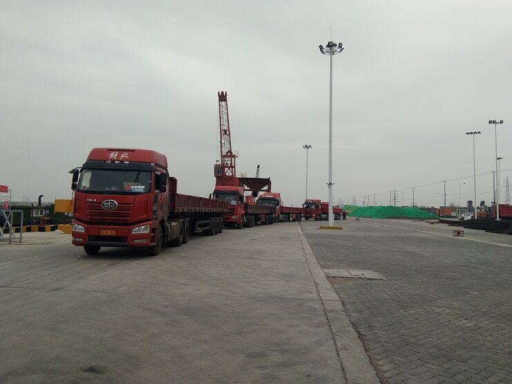 隨著江蘇省境內(nèi)復(fù)產(chǎn)復(fù)工的開(kāi)始,省內(nèi)道路交通逐漸恢復(fù),宵洋物流公司抓住戰(zhàn)機(jī),積極發(fā)展客戶。裝載著彈簧扁鋼特種鋼材的車輛絡(luò)繹不絕地駛?cè)氪a頭,直接裝船。這將大幅度降低碼頭倉(cāng)儲(chǔ)壓力,提高碼頭的運(yùn)轉(zhuǎn)能力。這也是碼頭首次鋼材進(jìn)行船運(yùn),打破以往車輛運(yùn)送貨物的局限性,大大增加碼頭的吞吐量。