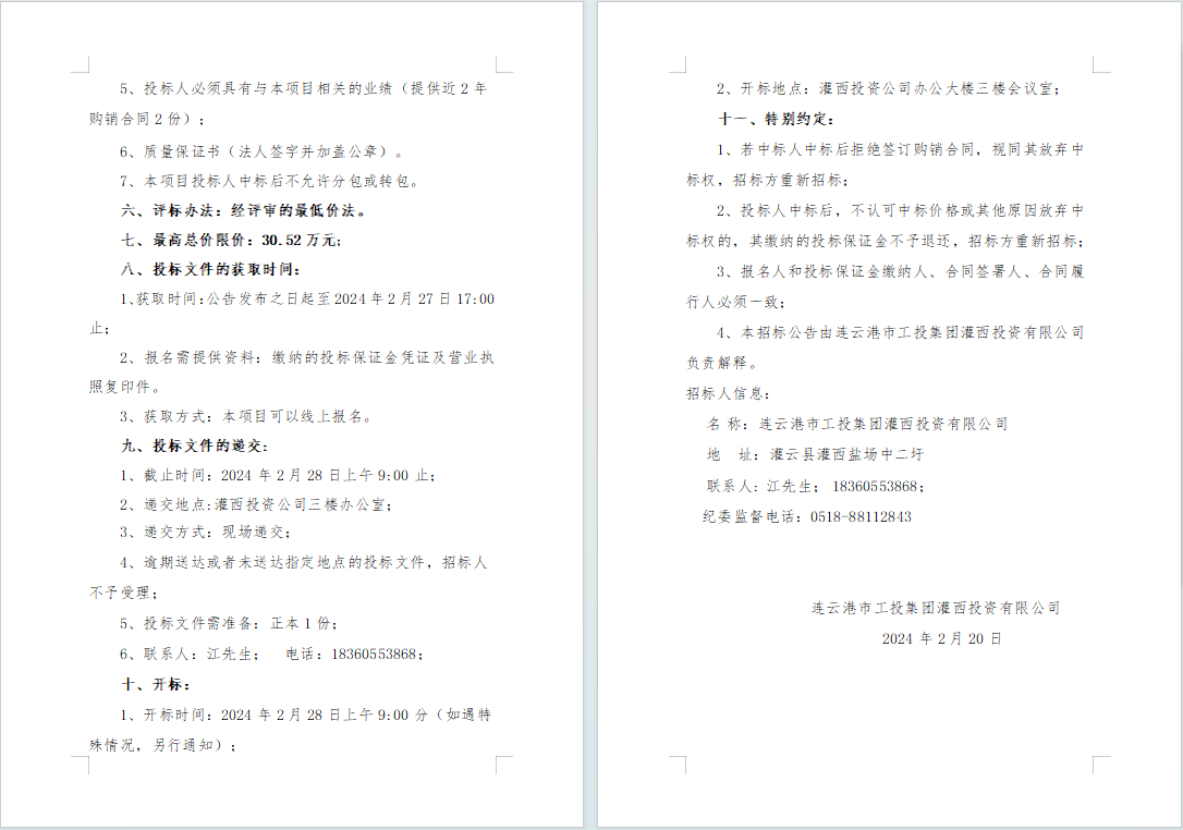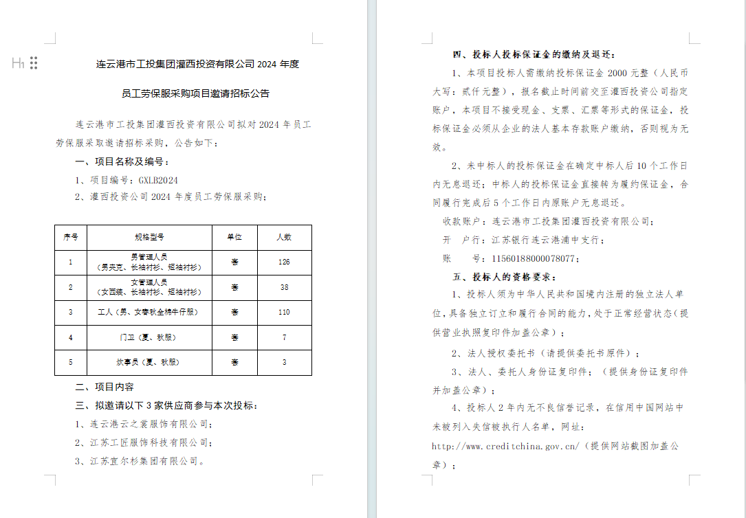 連云港市工投集團(tuán)灌西投資有限公司2024年度員工勞保服采購項(xiàng)目邀請招標(biāo)公告