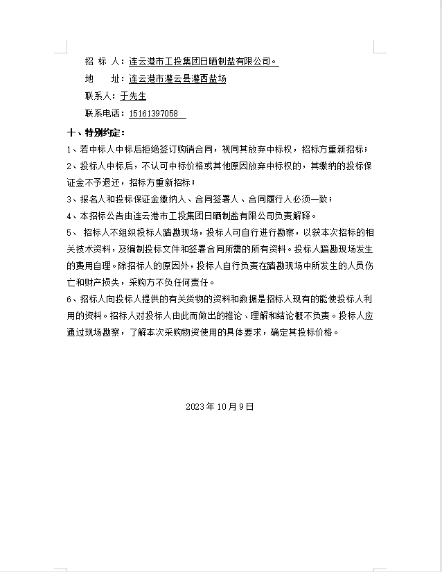 連云港市工投集團(tuán)日曬制鹽有限公司 玻璃纖維桿招標(biāo)公告