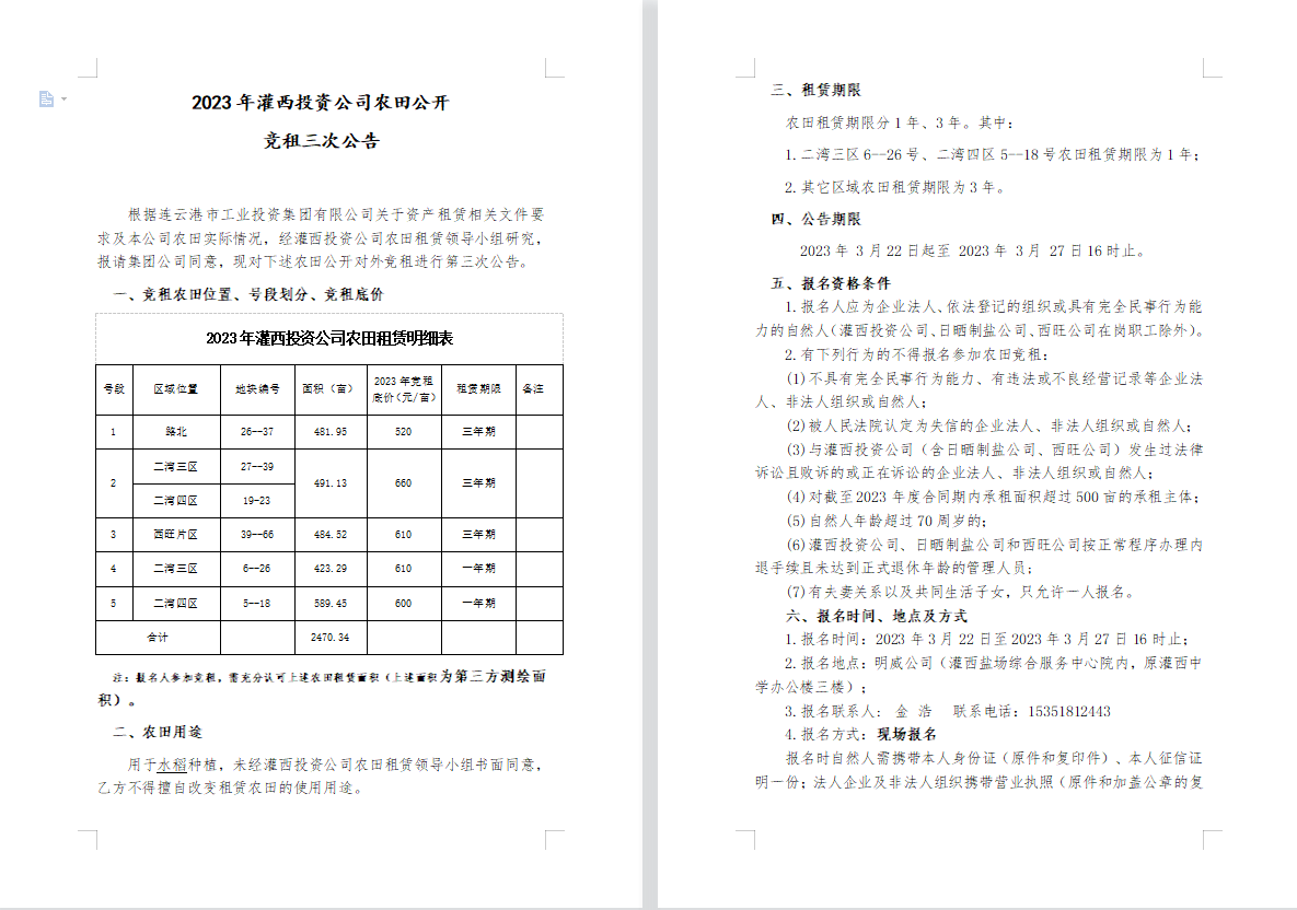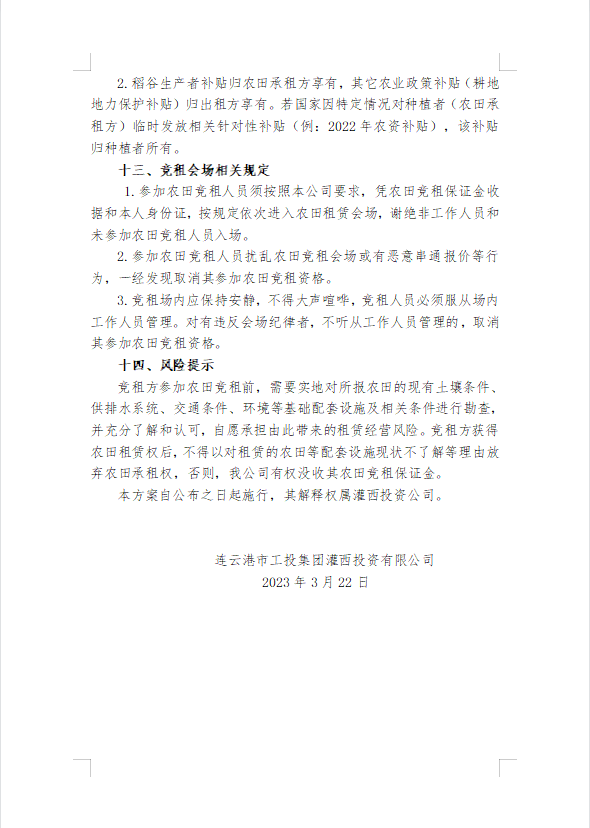 2023年灌西投資公司農(nóng)田公開競(jìng)租三次公告