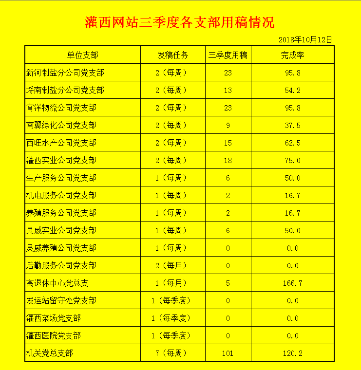 灌西網(wǎng)站三季度各支部用稿情況