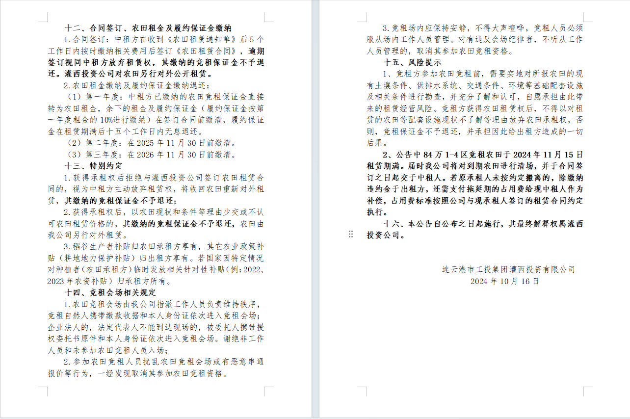 灌西投資公司2024年到期農(nóng)田公開(kāi)競(jìng)租公告