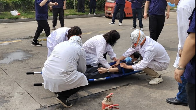 演練分為火災(zāi)應(yīng)急疏散、火災(zāi)應(yīng)急救援、有限空間應(yīng)急救援三個部分展開。在火災(zāi)應(yīng)急疏散演練中,設(shè)定三樓會議室為模擬火災(zāi)現(xiàn)場,人員2分鐘內(nèi)從指定逃生路線規(guī)范、有序、迅速撤離到了安全地帶;火災(zāi)事故應(yīng)急救援和有限空間應(yīng)急救援分別模擬紙箱庫著火及地龍有害氣體窒息,分信息報告、啟動應(yīng)急響應(yīng)、現(xiàn)場警戒、醫(yī)療救護(hù)、事故搶險等各處置環(huán)節(jié),整個演練緊張有序,過程流暢,達(dá)到檢驗(yàn)應(yīng)急預(yù)案的可行性和提高應(yīng)急救援人員的應(yīng)急處置能力的效果,為完善我公司應(yīng)急預(yù)案提供實(shí)踐依據(jù)。