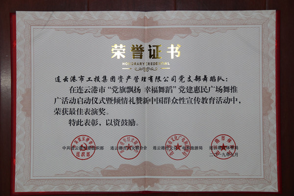 資產(chǎn)管理公司獲連云港市黨建惠民廣場(chǎng)舞活動(dòng)“最佳表演獎(jiǎng)”