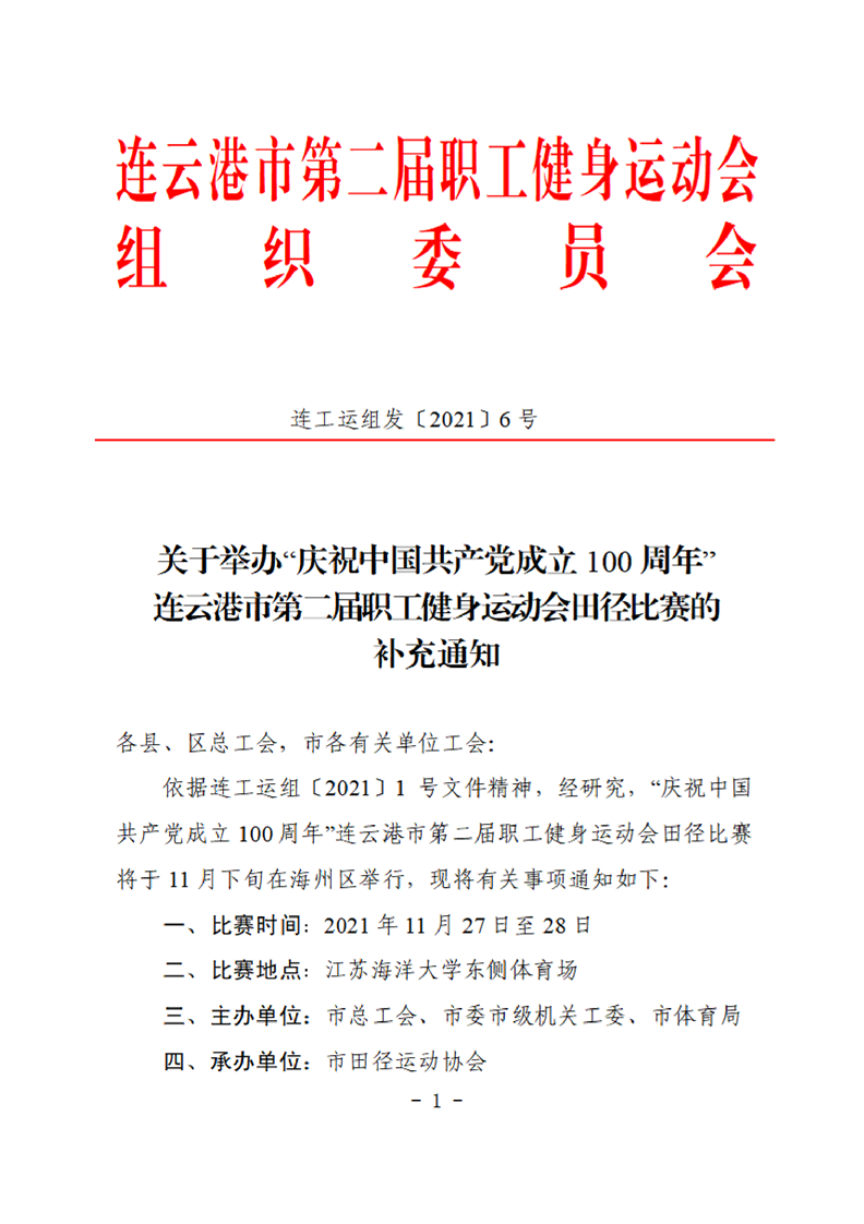 連云港市第二屆職工健身運(yùn)動(dòng)會(huì)田徑比賽的補(bǔ)充通知