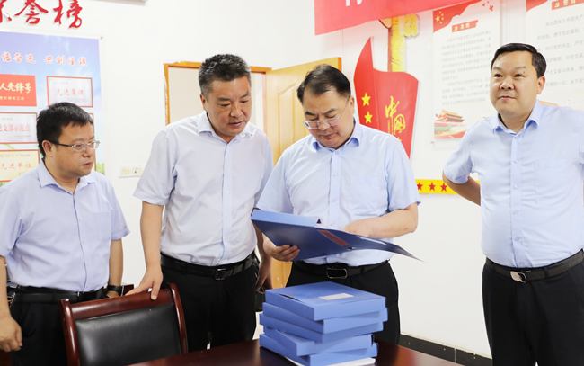 在大新農(nóng)場黨支部黨員活動室,戴書記與支部負責(zé)同志攀談交流,通過看現(xiàn)場、查臺賬、詢問題,詳細了解了大新支部黨員強基項、創(chuàng)優(yōu)項“1+1積分制管理”等工作情況。他指出,要貫徹新時代黨的建設(shè)總要求和新時代黨的組織路線,深化黨支部標(biāo)準(zhǔn)化規(guī)范化建設(shè),扎實開展黨史學(xué)習(xí)教育和“兩在兩同”建新功行動,落實好“三會一課”等基本制度,進一步建強黨在基層的戰(zhàn)斗堡壘,引導(dǎo)廣大黨員傳承偉大建黨精神,做新思想的堅定信仰者和忠實實踐者。