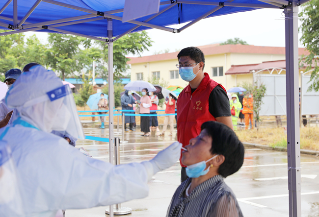 烈日炎炎,地表溫度已超40度。在疫情防控戰(zhàn)場上一抹抹鮮明的“志愿紅”用堅守的毅力、揮汗如雨的付出,全力以赴守護(hù)筑牢“防堤”。