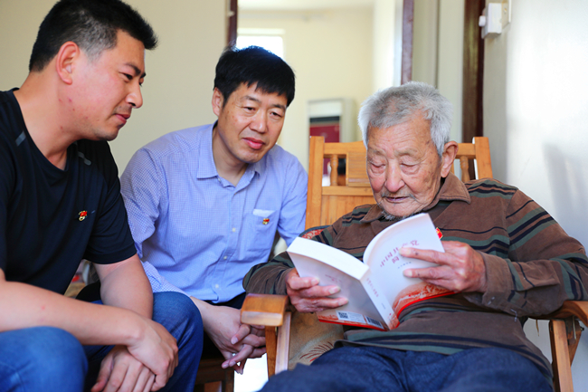 “送學(xué)上門(mén)”不掉隊(duì)。公司黨委開(kāi)展黨史學(xué)習(xí)教育送學(xué)活動(dòng),為離休老干部送出一份特殊的“紅色禮物”:一枚黨徽和一本《中國(guó)共產(chǎn)黨簡(jiǎn)史》,現(xiàn)場(chǎng)為離休干部佩戴黨徽,誦讀一篇章節(jié)選段,打通了黨史學(xué)習(xí)教育的最后一公里。
