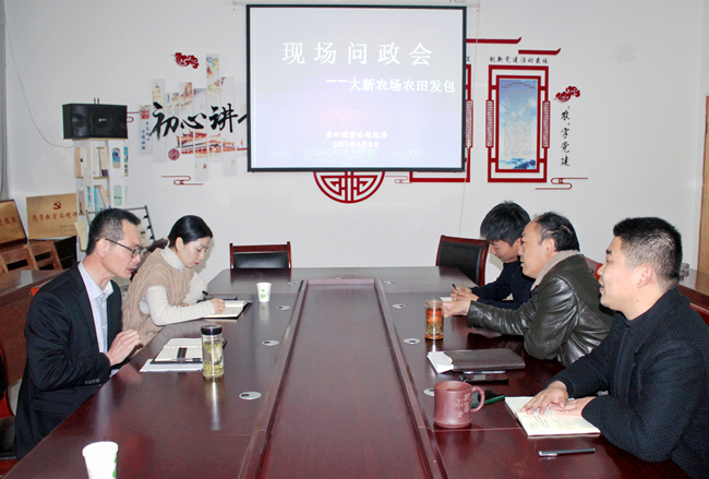 ? ? ? ?“大新農(nóng)場本次農(nóng)田發(fā)包,比往年價格有了較大提升,具體的定價依據(jù)是什么?”、“農(nóng)田發(fā)包是否按照流程,對條田工進(jìn)行了公開公示?”……在大新農(nóng)場“農(nóng)田發(fā)包”問政會現(xiàn)場,公司紀(jì)委針對涉及到的敏感問題進(jìn)行現(xiàn)場問政,大新農(nóng)場負(fù)責(zé)人及相關(guān)人員接受了現(xiàn)場問政,并一一給出詳細(xì)答復(fù)。