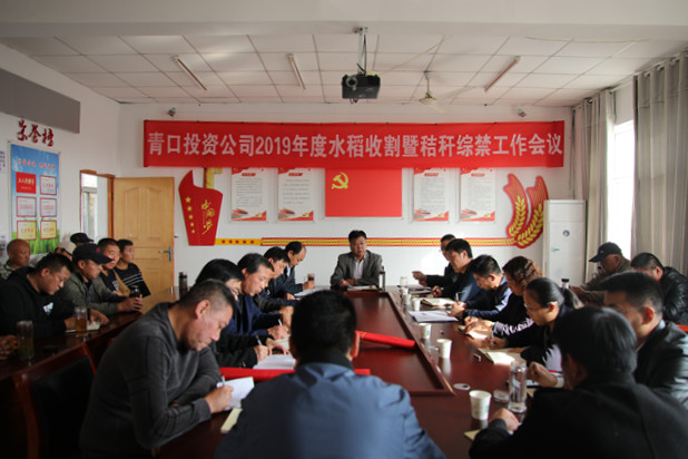 為了切實加強水稻收割及秸稈綜禁各項工作,10月31日下午,青口投資公司在大新農場會議室組織召開2019年度水稻收割暨秸稈綜禁工作會議,副總經理周緒祥、總經理助理張銘楊參加會議,相關部門和單位責任人、大新農場全體管理人員及條田工參加。