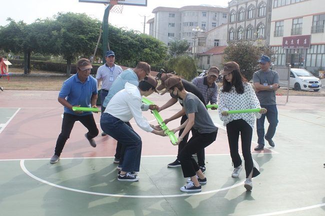 ? ? 25日在籃球場開展了團建游戲活動,游戲由輔路搭橋、積少成多、三人兩足、摸著石頭過河等小游戲組成。近50名隊員現(xiàn)場分組,每組選出一名隊長,并喊出自己的口號。在整個活動中職工們熱情高漲,“輔路搭橋”及“三人兩足”兩個游戲都需要全體隊員團結(jié)協(xié)作才能完成,隊員們配合默契、齊心協(xié)力到達終點;而“摸著石頭過河”是大家之前都沒有玩過的游戲,有的隊員笨拙的挪動引的圍觀者捧腹大笑,現(xiàn)場不時響起加油聲、歡笑聲,熱鬧非凡。