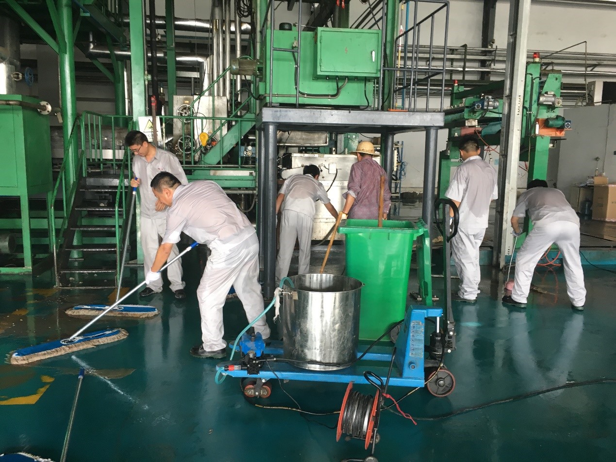 為推進(jìn)創(chuàng)建全國文明城市、做好公司文明辦公和文明生產(chǎn)工作,724日下午,神特新材料員工積極響應(yīng)號召,到一期前紡生產(chǎn)車間展開“大掃除”活動。活動現(xiàn)場熱火朝天,大家齊心協(xié)力,勁往一處使,為創(chuàng)造一期前紡生產(chǎn)車間的美好環(huán)境,貢獻(xiàn)一份“微薄之力”。