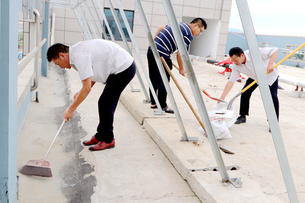 為凈化、美化公司辦公樓樓頂環(huán)境,消除積水隱患,8月26日上午,公司組織黨員、團員青年志愿者開展了專項清理整治行動。志愿者不畏艱辛,對樓頂進行了細致清掃,認真疏通排水口,力爭陰雨天氣不再出現(xiàn)積水現(xiàn)象。(神特宣)