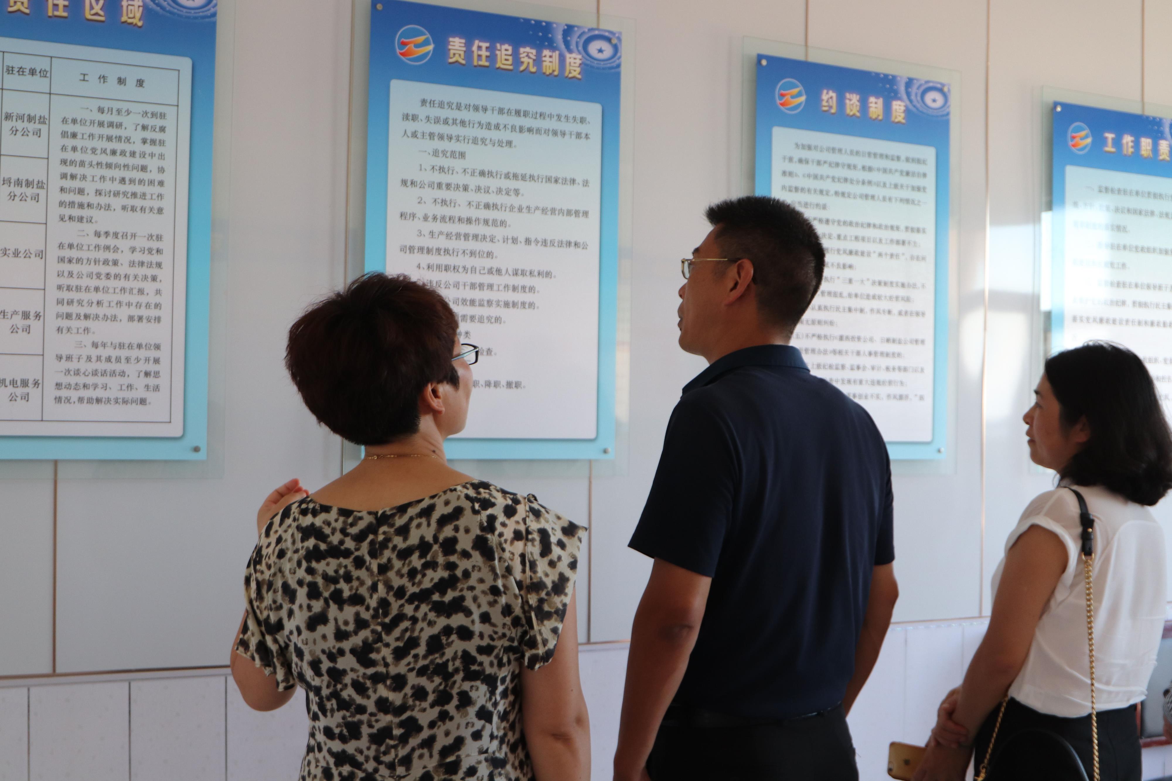 7月31日下午,神特公司與奧神新材料公司兩家紀(jì)檢干部結(jié)伴同行,前往灌西投資公司參觀學(xué)習(xí)。在灌西投資公司紀(jì)委書記王宏的陪同下,神特公司和奧神公司的紀(jì)檢人員參加了灌西投資公司經(jīng)營單位片區(qū)第二季度黨風(fēng)廉政發(fā)布會(huì),聽取了二季度黨風(fēng)廉政建設(shè)情況,隨后觀摩了新河、埒南、西旺等支部黨建活動(dòng)室,日曬制鹽片區(qū)、灌西經(jīng)營單位片區(qū)兩個(gè)派駐基層監(jiān)察室,查看了紀(jì)檢工作臺(tái)賬,并一同觀看了廉政微電影《鹽光》。