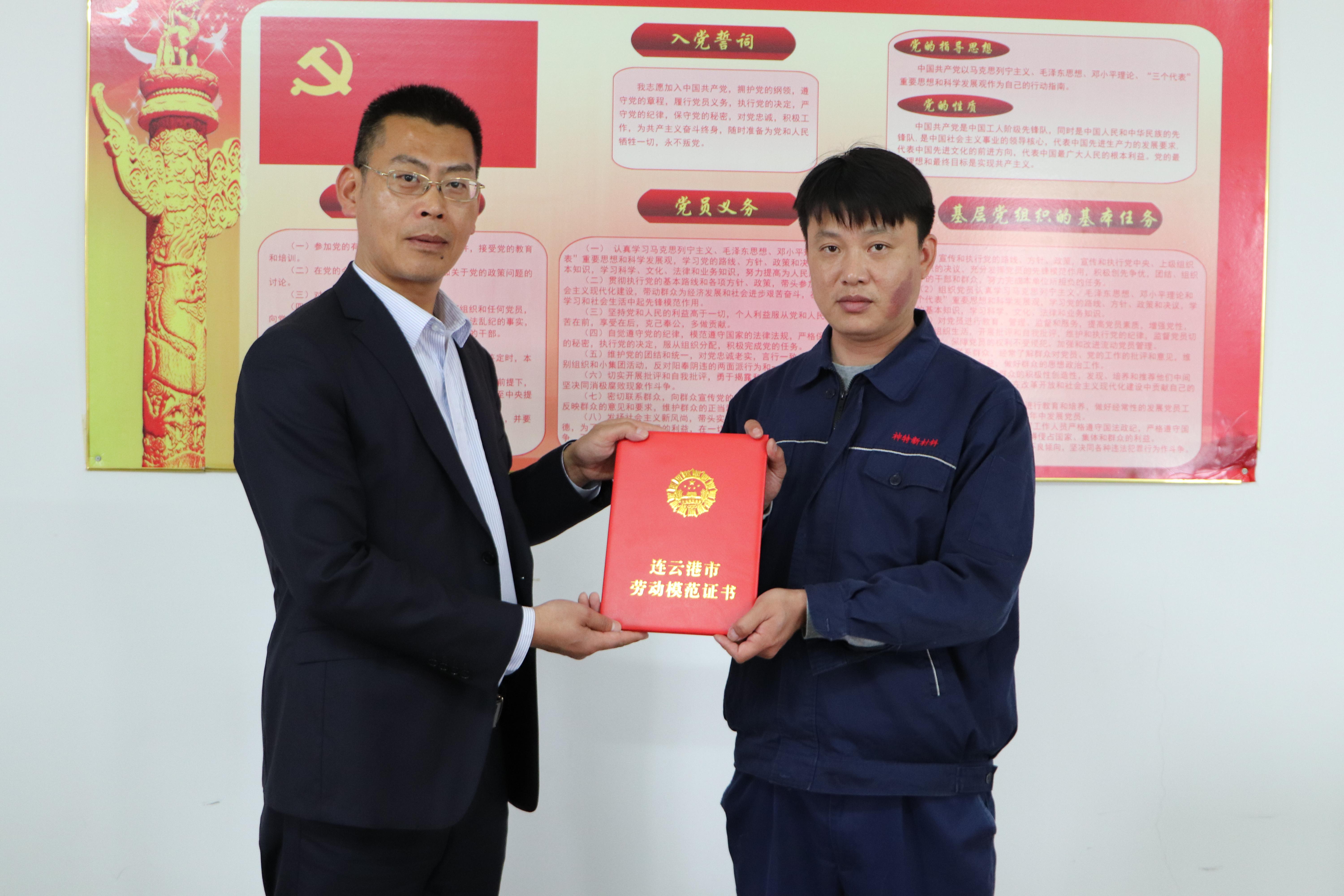 近日,我公司員工封安獲得連云港市勞動(dòng)模范殊榮。封安同志現(xiàn)為公司生產(chǎn)車間甲班大班長。他,九載如一日,始終保持著執(zhí)著、敬業(yè)和精益求精的精神,在平凡的崗位上做出不平凡的業(yè)績,詮釋了新時(shí)代工匠精神,展示了勞動(dòng)者模范風(fēng)采,成為一線工人的杰出代表。