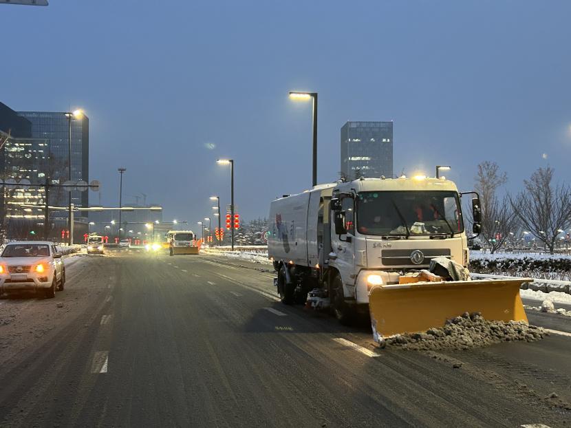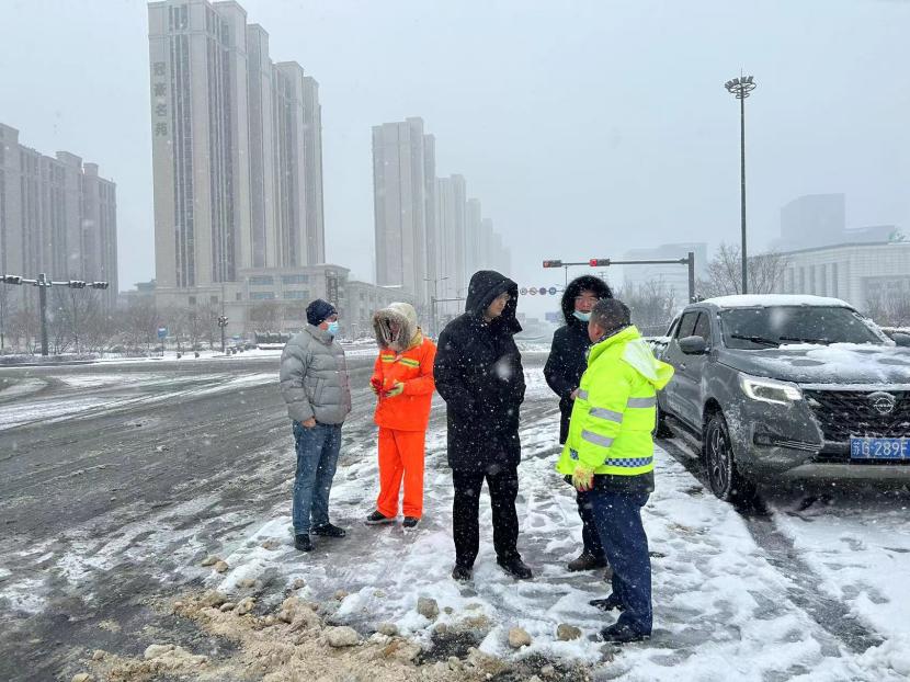 上午10時(shí)許,暴雪如約而至。裝有融雪劑的車輛全部整裝待發(fā),聞令而動(dòng),采取“人工+機(jī)械”不間斷作業(yè)模式,對(duì)轄區(qū)主次干道、橋涵、火車站東站、創(chuàng)智大廈等帶坡路段及時(shí)拋撒融雪劑,采取“滾刷+鏟車”組合方式,反復(fù)排掃路面積雪,確保主次干道、帶坡路段通暢無(wú)冰。