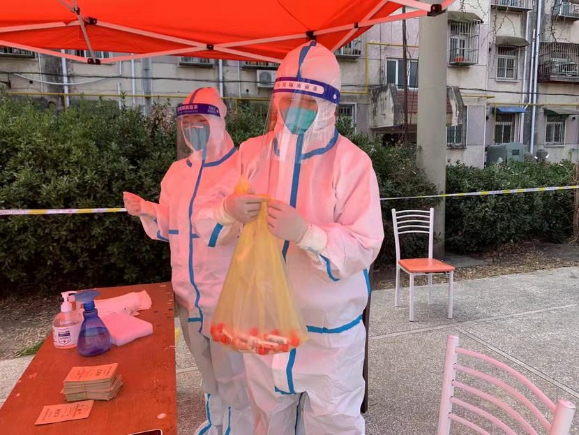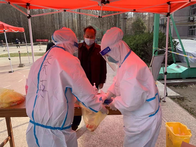 然而隨著疫情越發(fā)嚴(yán)重,小區(qū)核酸檢測員人手又緊張了起來,“我可以,這幾天我都學(xué)會(huì)了,最基本的我都會(huì)”秦英又是第一個(gè)舉手到最前線。這下她更忙了,每天凌晨三點(diǎn)起床做飯,五點(diǎn)社區(qū)報(bào)到,一直堅(jiān)守到晚上八點(diǎn)。為了節(jié)省防護(hù)服,她一般都要等到中午2點(diǎn)多鐘才休息吃飯,這股毅力讓社區(qū)、街道領(lǐng)導(dǎo)看在眼里,服在心上,連一直牢騷怪話的幾個(gè)群眾也為她由衷地豎起大拇指。