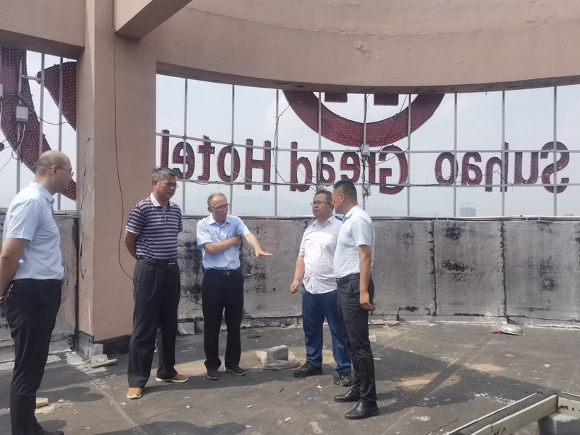 為進一步吸取蘇州酒店塌樓事故教訓(xùn),近日,臺北投資公司全面加強建筑施工領(lǐng)域安全生產(chǎn)檢查。7月14日集團公司安監(jiān)部胥廣會等領(lǐng)導(dǎo)一行檢查了公司租賃客戶蘇豪大酒店裝修工程。