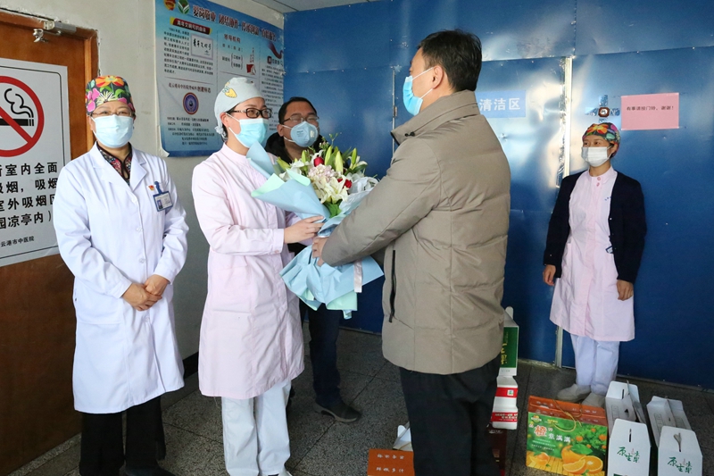 吳衛(wèi)平對(duì)中醫(yī)院醫(yī)護(hù)人員投身戰(zhàn)“疫”一線,用生命拯救生命,展現(xiàn)出的舍生忘死、救死扶傷的高尚職業(yè)道德,表示了崇高的敬意,同時(shí)也指出投資公司與中醫(yī)院還有一段神奇的紐帶:公司職工在一場(chǎng)意外休克中,幸得中醫(yī)院護(hù)士全力搶救才轉(zhuǎn)危為安,而這名護(hù)士既是我公司職工的家屬,也是中醫(yī)院廣大奮戰(zhàn)在疫情防控一線醫(yī)護(hù)者中的一員。這次來(lái)一是向中醫(yī)院的“逆行者們”表示敬意;二是向救死扶傷、醫(yī)者仁心的護(hù)士表示感謝;三是代表公司工會(huì)看望慰問(wèn)共戰(zhàn)疫,齊奉獻(xiàn)的職工家庭。