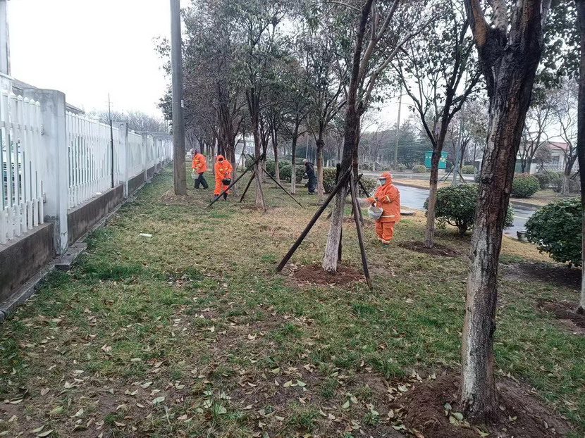 在現(xiàn)場(chǎng),大家身披雨衣、手拿提桶,有條不紊地開(kāi)展施肥工作。雨中施肥既能為植物提供營(yíng)養(yǎng),又能改善和提高植物抗性,從而起到了對(duì)綠化植物的長(zhǎng)勢(shì)、抗蟲(chóng)害病的重要作用。