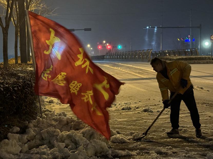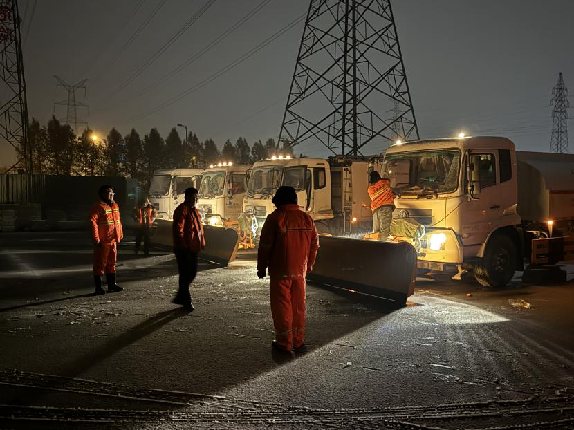 “搖人,快搖人”。環(huán)衛(wèi)分公司迅速響應并于凌晨1點01分緊急啟動掃雪除冰應急預案,全力以赴迎戰(zhàn)風雪。