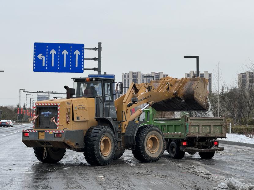本次掃雪除冰共配備了3輛清掃車、2輛鏟車、1輛撒布機以及20余噸融雪劑,20余把推雪鏟、鐵鍬等清雪工具,采取“邊下邊除、邊除邊清、邊清邊運”的方式,根據道路積雪厚度和結冰情況,通過撒布融雪劑、除雪鏟推雪、人工配合等多措并舉,有效清理區(qū)內主干道積雪,做到“即下即掃、雪停路清”,保障群眾出行安全。此外,針對紅綠燈路口、馬路轉彎處、陡坡、橋面以及非機動車道等重要節(jié)點,環(huán)衛(wèi)分公司又出動了100余名工作人員點對點人工撒布融雪劑,共保障面積300余萬平方米。