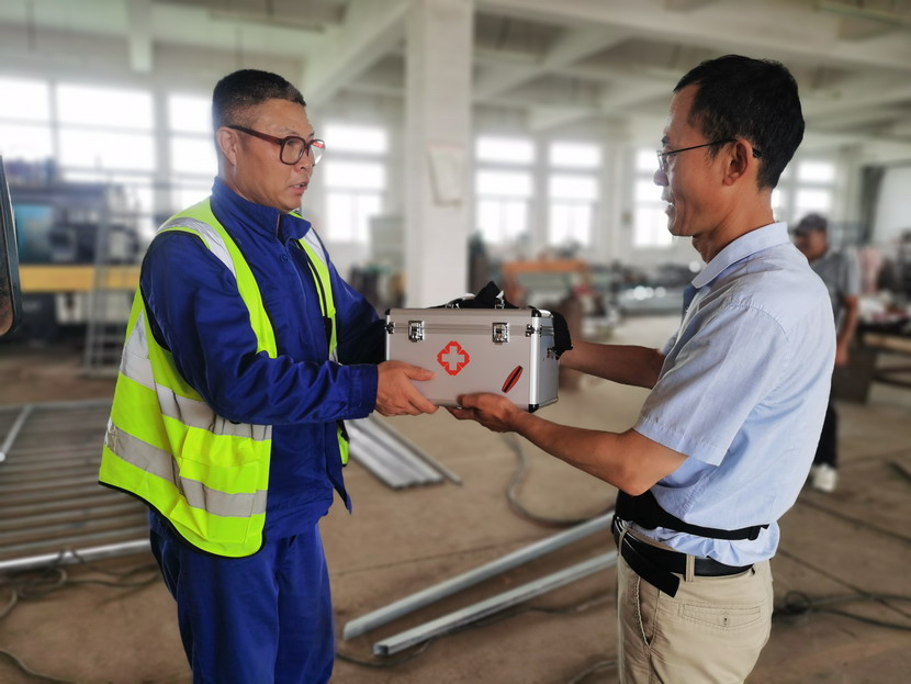 注重施工現(xiàn)場安全管理,規(guī)范電信、市政、綠化工程施工管理規(guī)范,班組安全生產(chǎn)實行“一班三檢”制,各班組進場前《安全交底》已經(jīng)形成常態(tài)化。為防患于未然,提高作業(yè)班組應急反應能力,翔立分公司購置一批急診箱并配齊防暑和急救藥品,送健康送安全防護進班組。