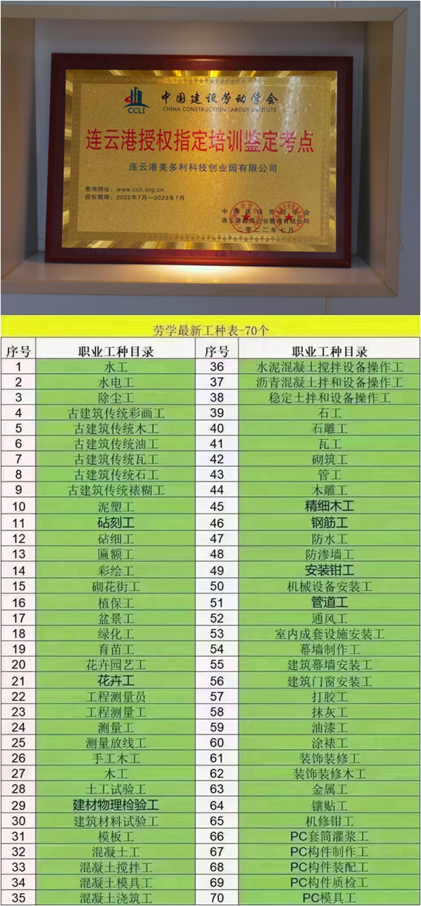 近日,通過(guò)多次協(xié)調(diào)和努力,美多利公司順利獲得“中國(guó)建設(shè)勞動(dòng)學(xué)職業(yè)技能等級(jí)認(rèn)定”資質(zhì)。