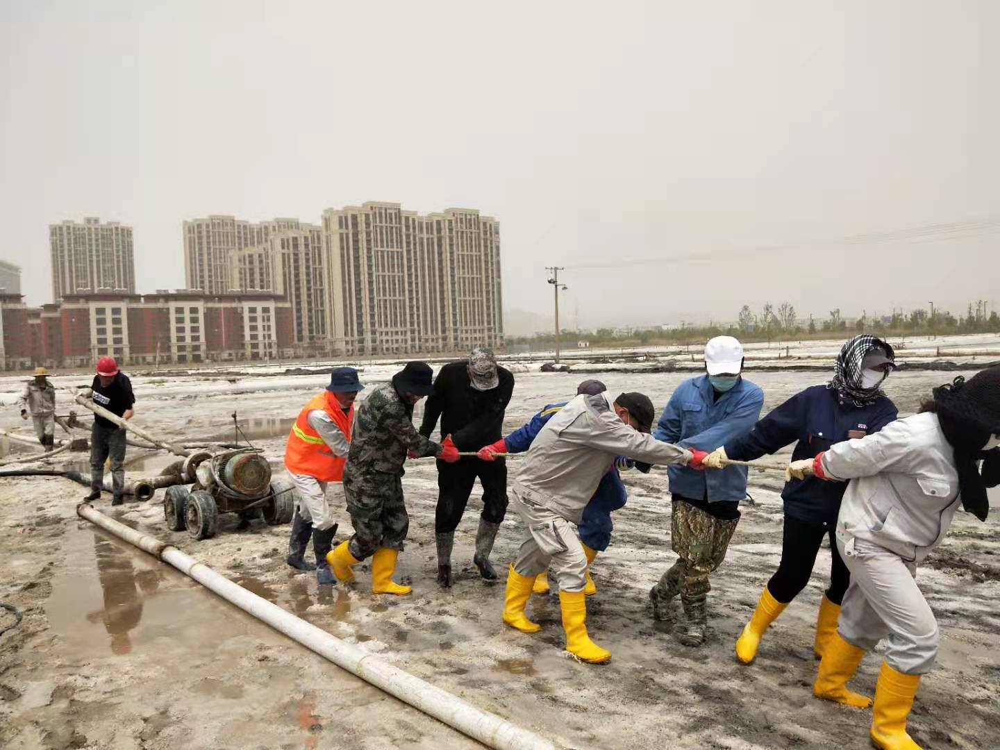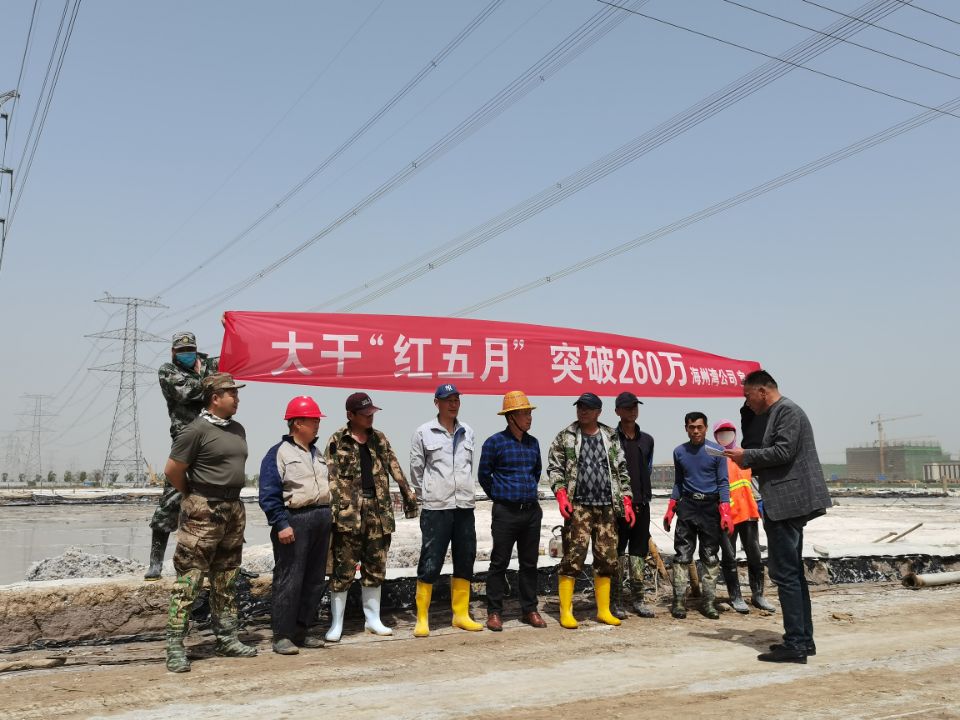 5月8日上午,海州灣公司在扒鹽現(xiàn)場,利用搶修扒鹽機械的間隙,組織當(dāng)班職工迅速傳達(dá)了投資公司“大干紅五月,再創(chuàng)新佳績”動員大會會議精神,積極宣貫投資公司政策和鹽鈣產(chǎn)業(yè)當(dāng)前面臨的嚴(yán)峻形勢,并制定公司大干紅五月小指標(biāo)勞動競賽方案,開展職工勞動技能大比武,明確公司五月份經(jīng)濟(jì)指標(biāo),動員全員要團(tuán)結(jié)奮進(jìn),樹立榮辱與共的集體榮譽感,進(jìn)一步凝聚奮進(jìn)力量,提升干群士氣,全力沖刺五月份扒鹽10000噸、排鹵60000方、實現(xiàn)營業(yè)收入260萬元的經(jīng)濟(jì)目標(biāo),掀起大干紅五月的熱潮,營造齊心協(xié)力、大干快干的良好局面。