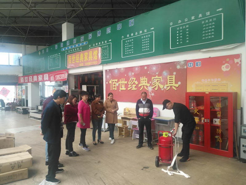 近期,臨達公司為更好的做好光伸家具市場消防工作,特別購置了7具20公斤推車式干粉滅火器。面對新事物,就有新方法、新要求,10月12日上午,臨達公司組織相關(guān)方人員,在現(xiàn)場進行了專項培訓(xùn),對其使用范圍、使用方法和注意事項作出詳細的講解。