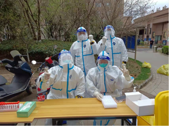 ? ? 12日? 7點(diǎn)集合,領(lǐng)裝備,鑒于昨天的教訓(xùn),早上沒喝水,吃了兩口飯,要不大白服就浪費(fèi)了。出了點(diǎn)意外,排小區(qū)把我們小區(qū)給忘了,沒醫(yī)生來支援,就三個(gè)醫(yī)生,三個(gè)點(diǎn),三張臺(tái),隊(duì)伍排的那叫一個(gè)長(zhǎng)。“請(qǐng)大家把健康碼打開,保持一米距離,戴好口罩!”這是我上午說的最多的幾句話。咱們贛榆的醫(yī)生非常辛苦,累了一上午,下午還要采黃碼,掃樓,向他們致敬!中午剛領(lǐng)盒飯就通知徐州支援的醫(yī)生到了,來了十幾個(gè),扒拉兩口飯,開始穿裝備。第七輪結(jié)束,感覺人都廢了,渾身濕透,嗓子疼,不想動(dòng)!